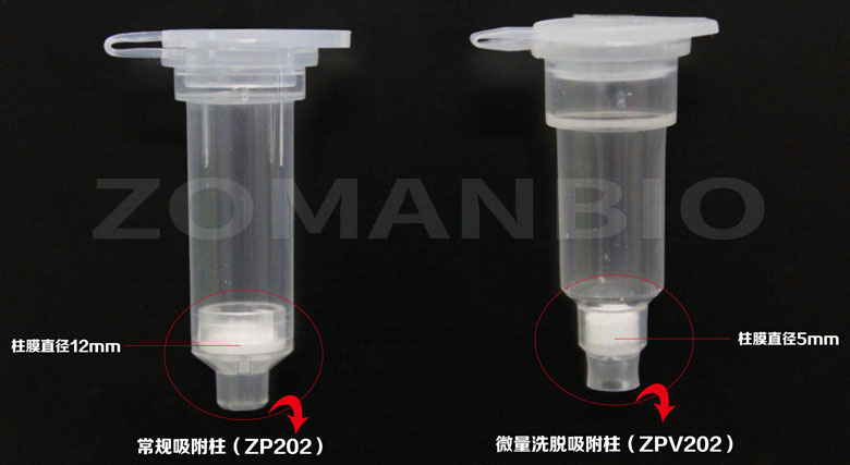 —— 常規吸附柱與微量洗脫吸附柱對比圖 ——