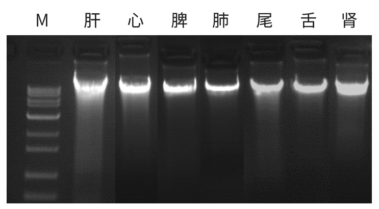 使用ZP332提取10-15mg小鼠不同組織的DNA,洗脫體積:50uL。