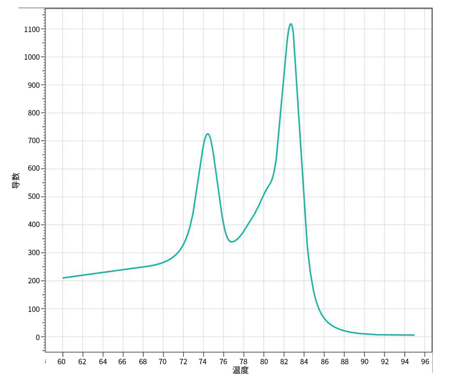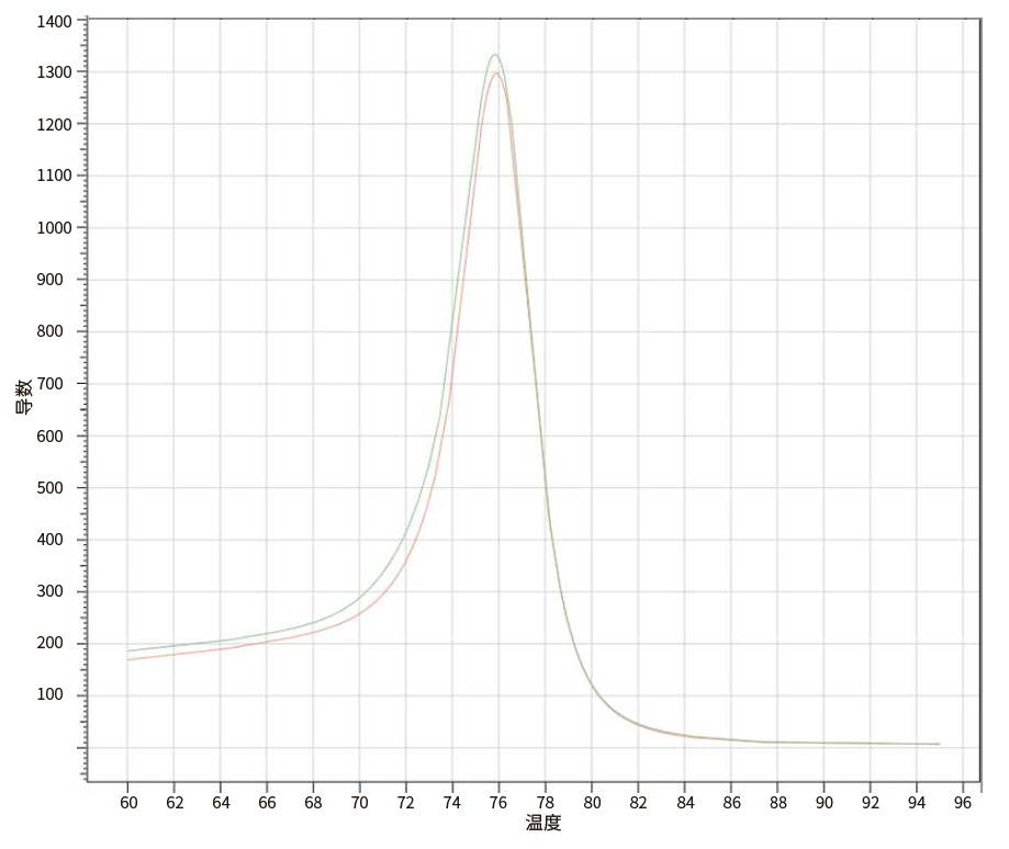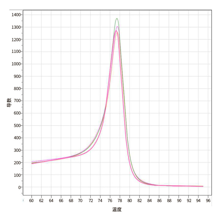 以水稻miRNA為模板,使用本產(chǎn)品與某T公司和某V公司同類產(chǎn)品進(jìn)行反轉(zhuǎn)錄,得到的cDNA進(jìn)行熒光定量檢測(cè)osa-miR156a。可以看到,使用本產(chǎn)品得到的融解曲線為單峰,同類產(chǎn)品得到的融解曲線為雙峰。
