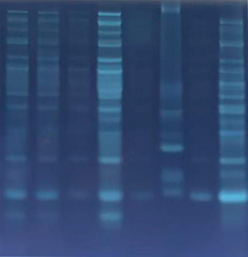 正常電泳結束后,用雙蒸水漂洗凝膠,在紫外照膠儀中紫外照射1-10min,一般5min即可達到最亮,調整曝光時間2S,采集圖像。
