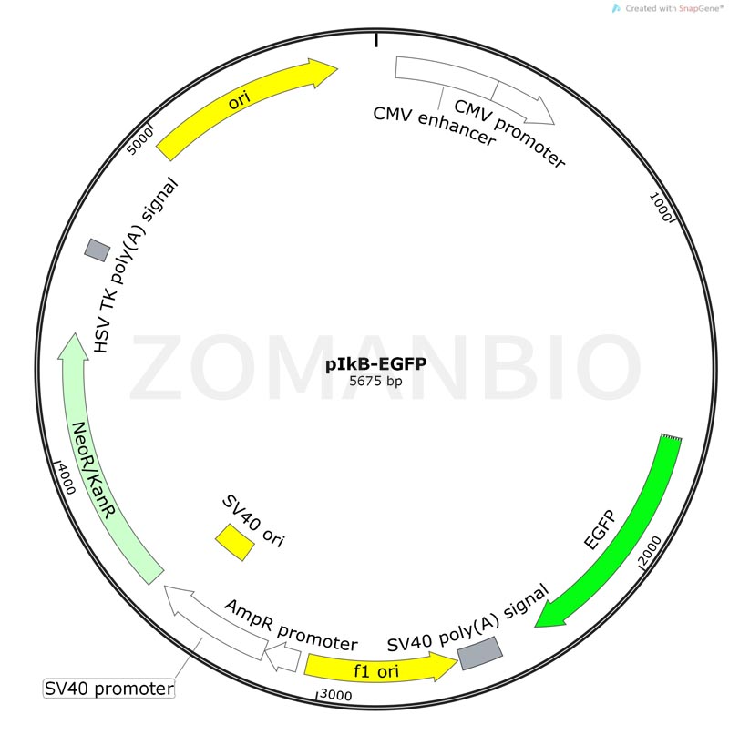 pIkB-EGFP(NM_020529.2)是一個人源基因哺乳細(xì)胞過表達(dá)質(zhì)粒。質(zhì)粒只保證關(guān)鍵序列正確,不保證表達(dá)效果。