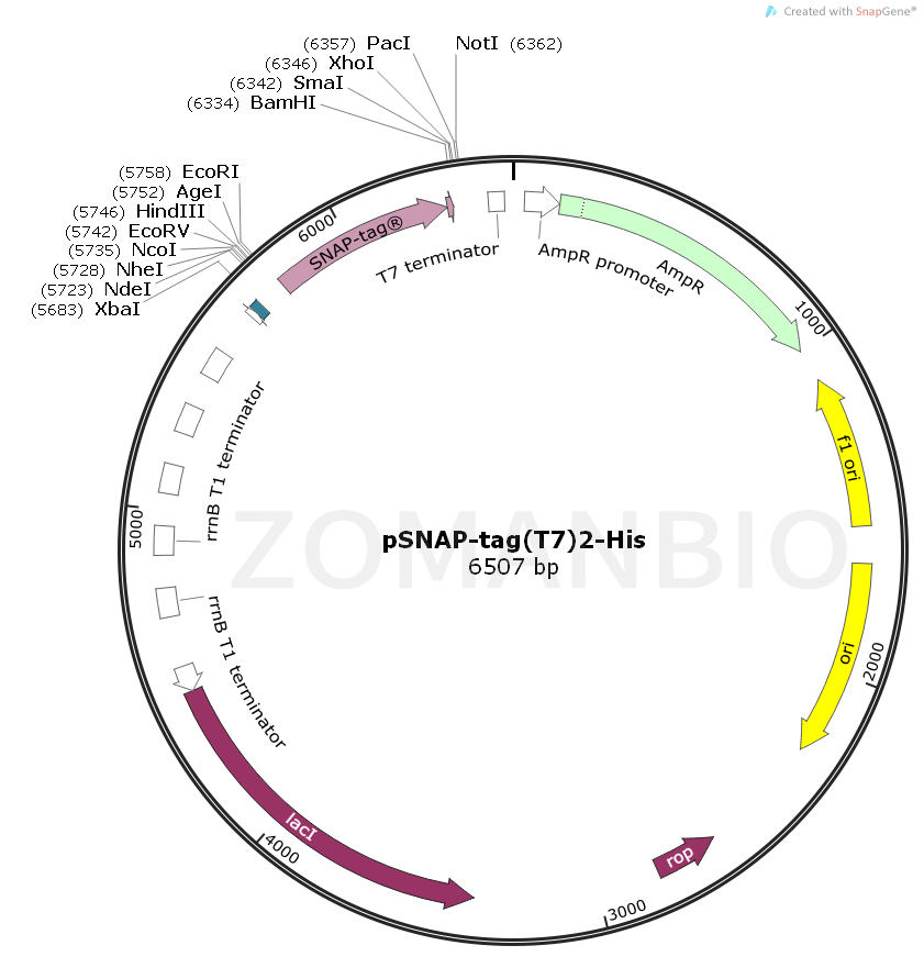 質粒序列可參考(具體以測序為準)下載:ZK343 pSNAP-tag(T7)2-His大腸表達質粒.txt